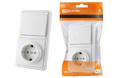 Блок комбинированный БКВР 1-но кл. выкл + розетка 2П+З с з/ш TDM SQ1813-0001