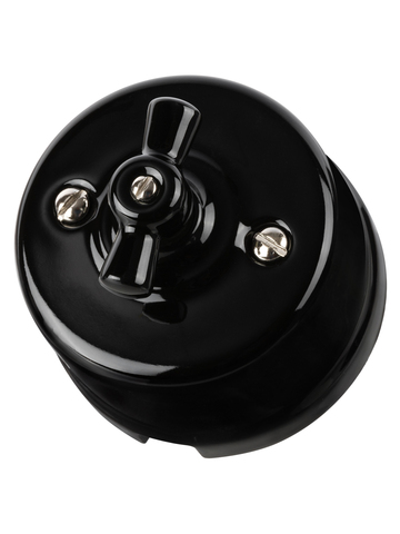 Выключатель фарфоровый поворотный с ручкой (бантик) 10А черный «Болонь» TDM SQ1820-0002
