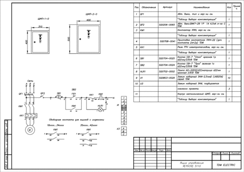 Ящик управления электродвигателем Я 5110-3574 УХЛ4 Т.р.23-32А 12,5; 15 кВт. Ящик управления Я5110 предназначен для местного управления одним асинхронным нереверсивным электродвигателем, работающим в продолжительном, кратковременном или повторно-кратковременном режимах. Ящик имеет местную индикацию состояния работы фидера и возможность для подключения дистанционной индикации состояния работы фидера. По заказу ящик Я5110 может быть оснащён местной индикацией сигнала аварии фидера и возможностью для подключения дистанционной индикации сигнала аварии фидера. Защита при работе электродвигателя осуществляется с помощью автоматического выключателя с электромагнитным и тепловым расцепителями и тепловым реле электромеханического или электронного типа. Автоматический выключатель и тепловое реле по заказу могут быть заменены на автомат защиты двигателя. Ящик управляется фазным напряжением. Ящик имеет стальную сварную конструкцию корпуса с дверью на петлях, фиксируемой замком, обеспечивающим степень защиты IР31. По заказу ящик может быть выполнен в пластиковом корпусе. Аппаратура устанавливается в ящике на специальной панели и на двери с внутренней стороны.