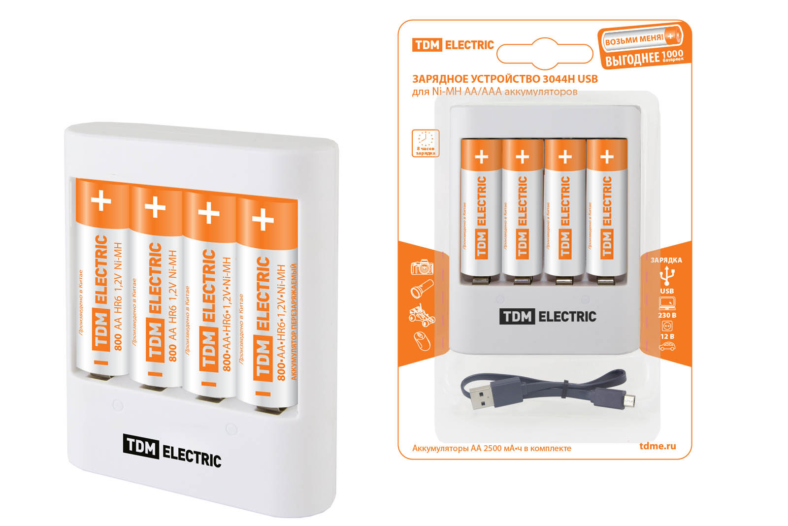 Зарядное устройство 3044Н (300 mA 4 слота АА/ААА 2 кан.+4xAA2500 USB) TDM SQ1702-0105