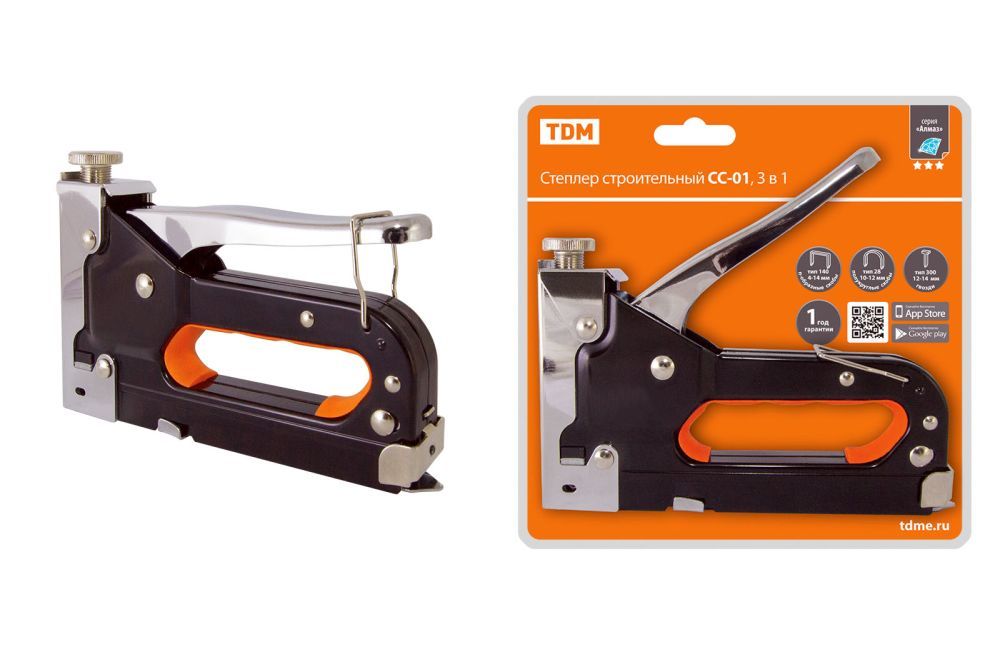 Степлер строительный СС-01, 3 в 1, Скобы тип 140:4-14мм, тип 28:10-12мм, тип 300:12-14мм,"Алмаз" TDM SQ1038-0101
