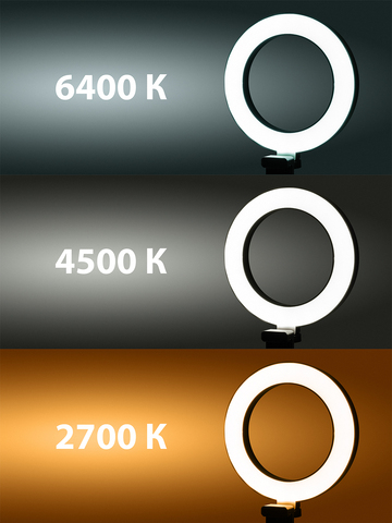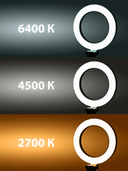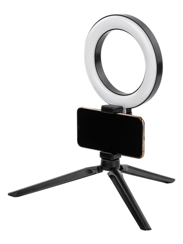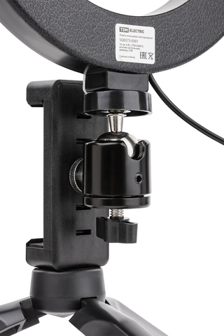 Лампа кольцевая светодиодная 16 см, 6 Вт, 2700-6400 К, штатив наст., диммер, USB, TDM SQ0373-0301