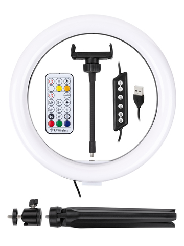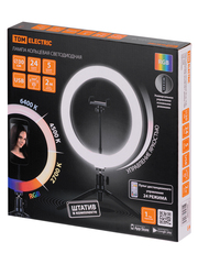 Лампа кольцевая светодиодная 30 см, 16 Вт, 2700-6400 К+RGB, штатив наст., диммер, ПДУ, USB, TDM SQ0373-0303