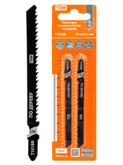 Пилки для электролобзика по дереву, HCS, 75х2,5 мм, чистый рез, T101BR, 2 шт, "Рубин", TDM