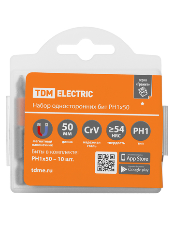 Набор бит PH1x50, односторонних, сталь CrV, Е 1/4", 10 шт., «Гранит» TDM SQ1019-0324 TDM ELECTRIC