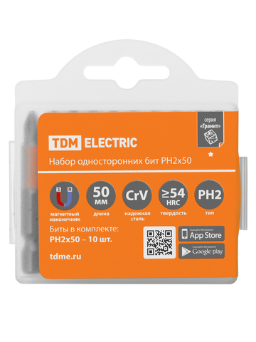 Набор бит PH2x50, односторонних, сталь CrV, Е 1/4", 10 шт., «Гранит» TDM SQ1019-0342 TDM ELECTRIC