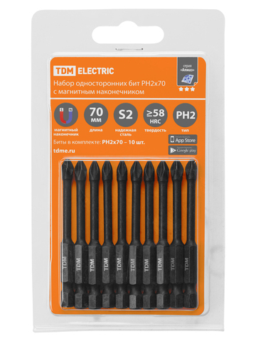 Набор бит PH2x70, односторонних, сталь S2, Е 1/4", намагниченные, торсионные, 10 шт., «Алмаз» TDM SQ1019-0445 TDM ELECTRIC