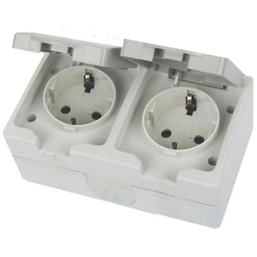 Розетка двойная 2П+3 (горизонтальная) открытой установки IP54 16А "Вуокса" TDM