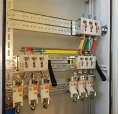В шкафу ИВРУ-2 установлен один вводной рубильник и два отходящих рубильника с держателями плавких предохранителей ППН, обеспечивающие подключение и защиту двух отходящих линий.