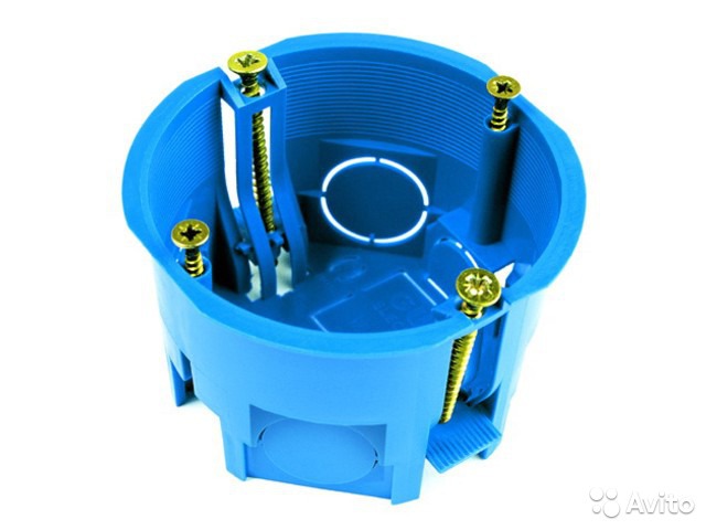 Установочная коробка СП D65х45мм, саморезы, пл. лапки, синяя, IP20, TDM