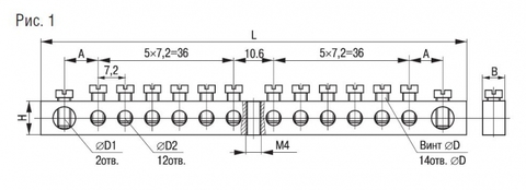 Шина "N" нулевая 6х9мм 14/1 (14групп/крепеж по центру) TDM SQ0801-0004