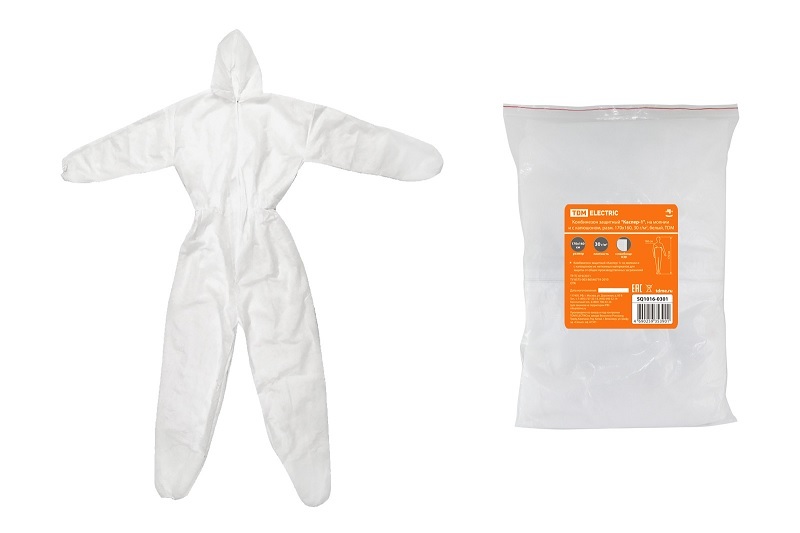 Комбинезон защитный "Каспер-2", на молнии и с капюшоном, разм. 187х160, 30 г/м2, белый, TDM