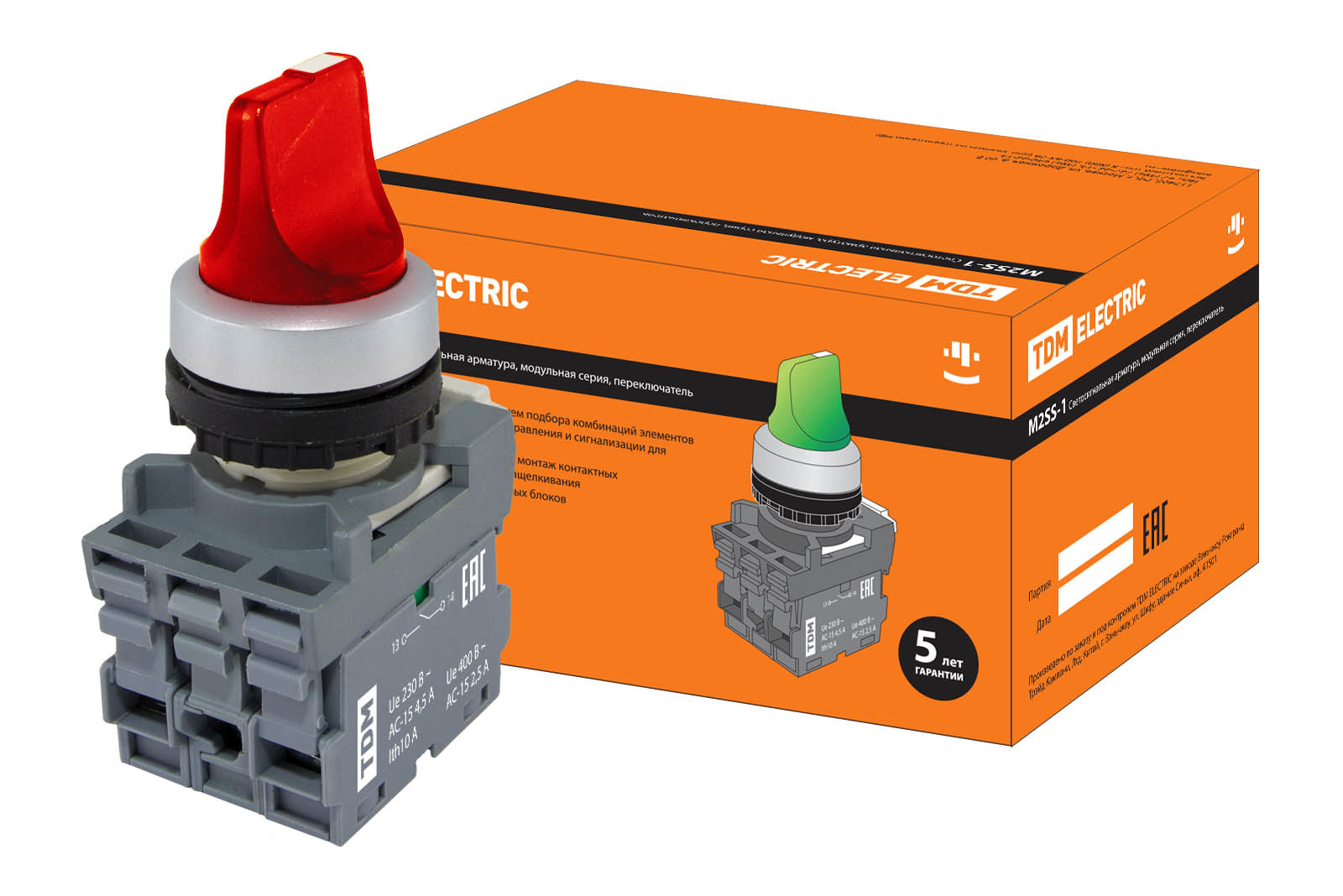 Переключатель на 3 положения с фиксацией M3SS1-21R короткая ручка(LED) d22мм/220B 1з+1р красный TDM SQ0747-0074