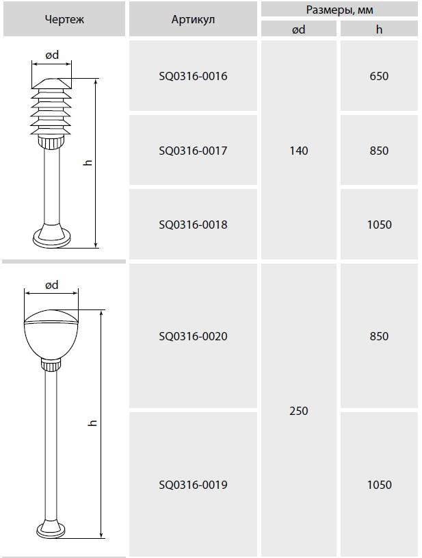 Светильник НТУ 01-60-014 "Поллар 1103" h=650 мм TDM SQ0316-0016