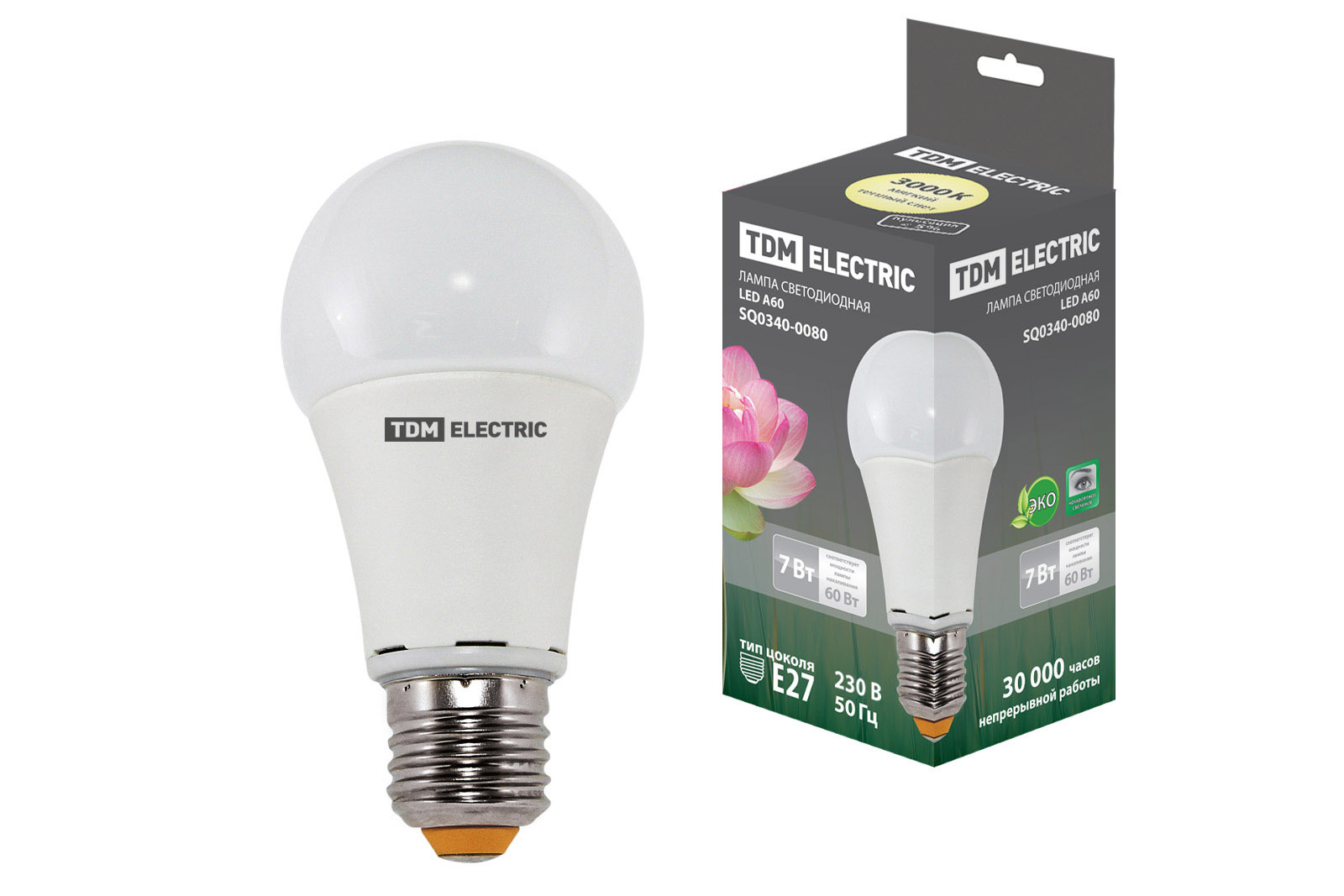 Лампа светодиодная А60 - 7 Вт-220 В -3000 К–E27 TDM SQ0340-0080