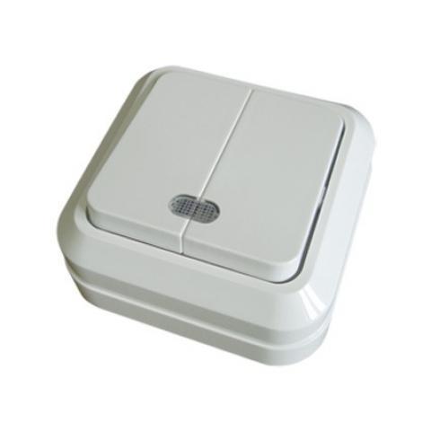 Выключатель 2-кл. открытой установки с подсветкой IP20 10А, белый "Ладога" TDM